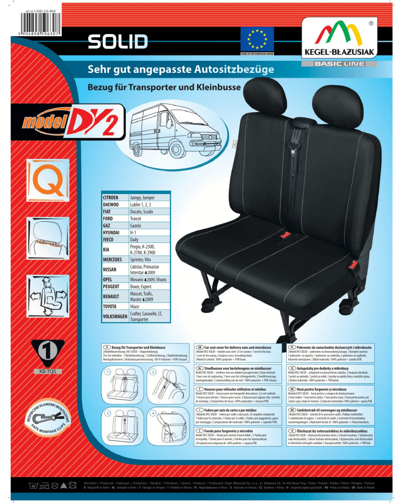 Prispôsobené poťahy SOLID z radu Basic Line – to sú lacné a zároveň veľmi silné poťahy do osobných automobilov, ktoré sa vyznačujú nesmierne atraktívnym vzhľadom. Tým, čo poťahy SOLID odlišuje od iných poťahov tohto typu, je materiál, z ktorého boli vyrobené, konkrétne žakárová látka s veľmi vysokou odolnosťou voči roztrhnutiu a predratiu. Materiál je podlaminovaný penou spolu so šifónom, vďaka tomu dobre priľne k čalúneniu. Zadná časť poťahov je úplne uzatvorená, čo umožňuje nielen chrániť čalúnenie, ale tiež operadlo sedačky. Poťahy SOLID sú tvorené pre konkrétne modely áut - boli starostlivo navrhnuté a dôkladne dokončené. Poťahy SOLID aj napriek nízkej cene v ničom nezaostávajú za drahšími poťahmi. Veľmi dobre chránia originálne čalúnenie auta pred znečistením a zničením, zároveň nadchnú vkusným vzhľadom.