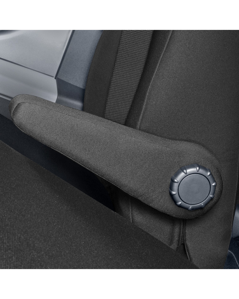-Vybavené špeciálnym zapínaním na suchý zips, ktorý umožňuje vytiahnutie lakťovej opierky v poťahu na sedadlo vodiča