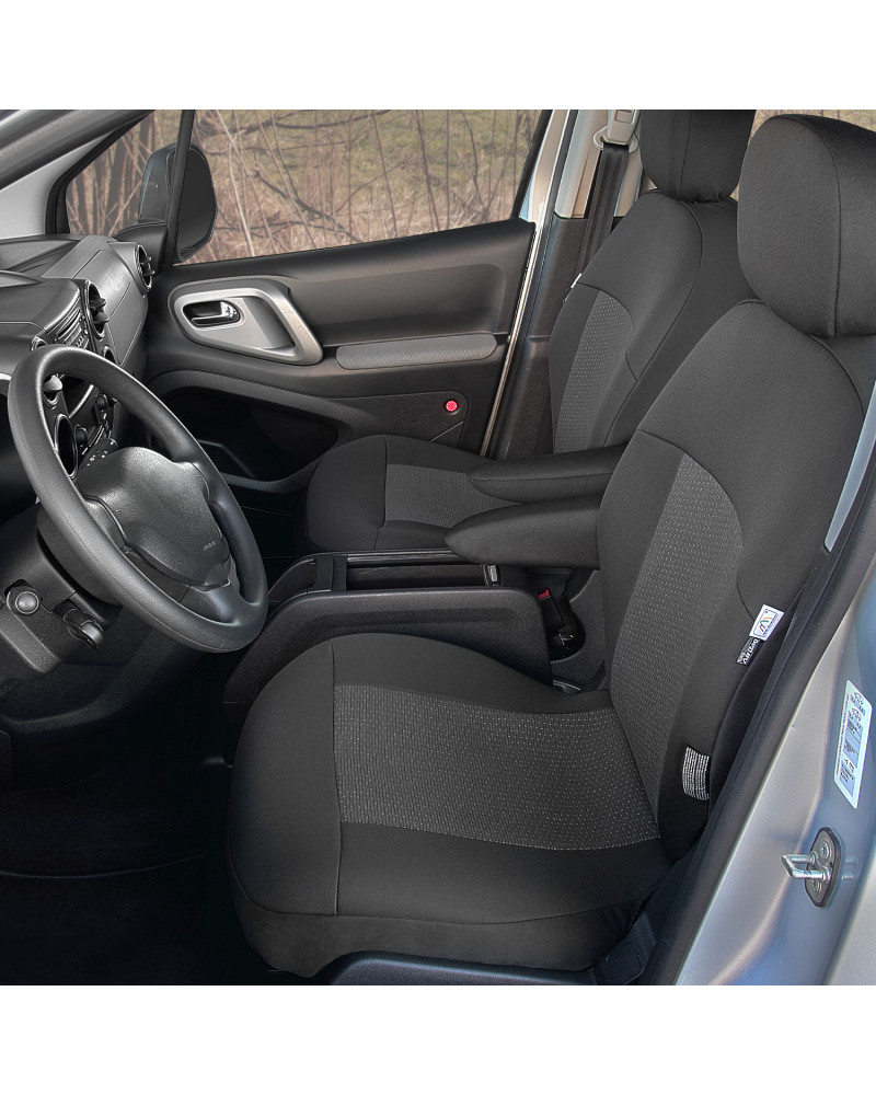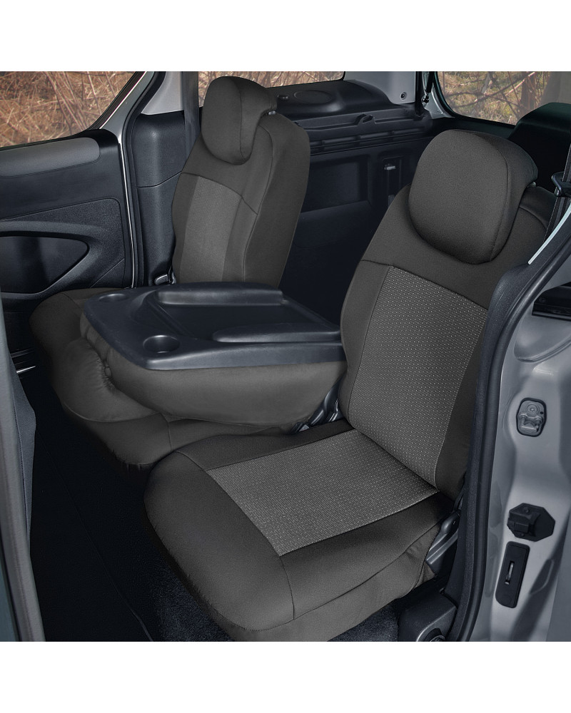 2 predné sedadlá (poťahy prispôsobené pre lakťové opierky inštalované v bočných častiach operadla a pre stolčeky v zadnej časti operadla)