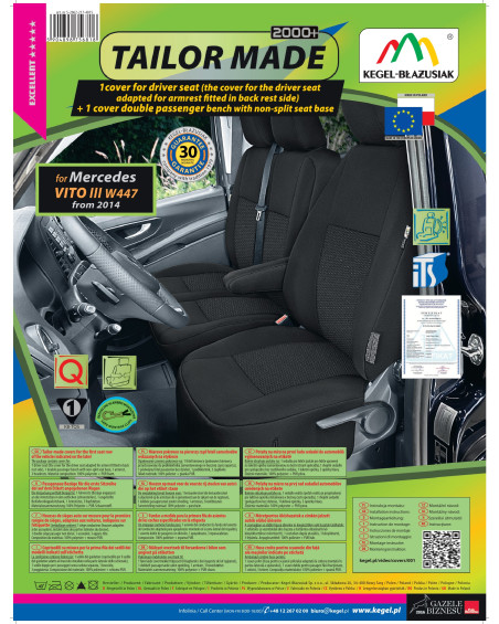 Ako už bolo uvedené predtým, predná i zadná časť poťahu sú ušité zo silného, pevného čalúnnického materiálu. Poťahy majú nevyhnutné, uzatvárateľné otvory, ktoré umožňujú ich natiahnutie bez nutnosti vyťahovať opierky hlavy a zhotovovať ďalšie otvory. Prednosťou poťahov TAILORE MADE je to, že kryjú celý zadný povrch operadla. Vďaka tejto vlastnosti vyzerajú veľmi dobre tiež zozadu sedačky a zároveň ju chránia pred znečistením a poškodením (to je dôležité predovšetkým pre osoby, ktoré majú malé deti). Komplet je vybavený špeciálnymi plastovými sponami, do materiálu sú všité pripevnenia, čo s pomocou priloženého obrázkového návodu na obsluhu zaisťuje veľmi ľahkú inštaláciu. Poťahy možno bez obáv prať na 40° – podľa pokynov na štítku. Výrobok renomovanej firmy Kegel-Błażusiak, najväčšieho výrobcu a exportéra v odvetví autopoťahov a pracovných odevov. Vyrobené v Poľsku, predovšetkým z poľských surovín, dodržaním všetkých kvalitatívnych štandardov Európskej únie. Nákupom poťahov Kegel-Błażusiak podporujete poľskú ekonomiku a chránite poľské pracovné miesta a tiež máte istotu, že si kupujete výrobok najvyššej kvality.