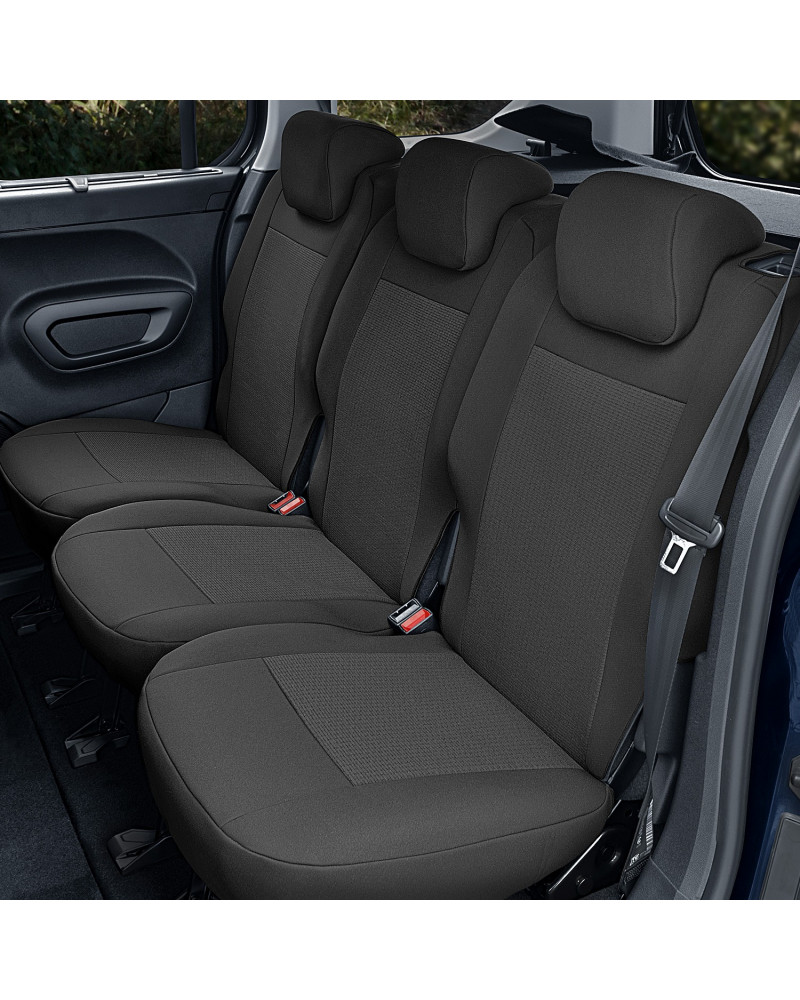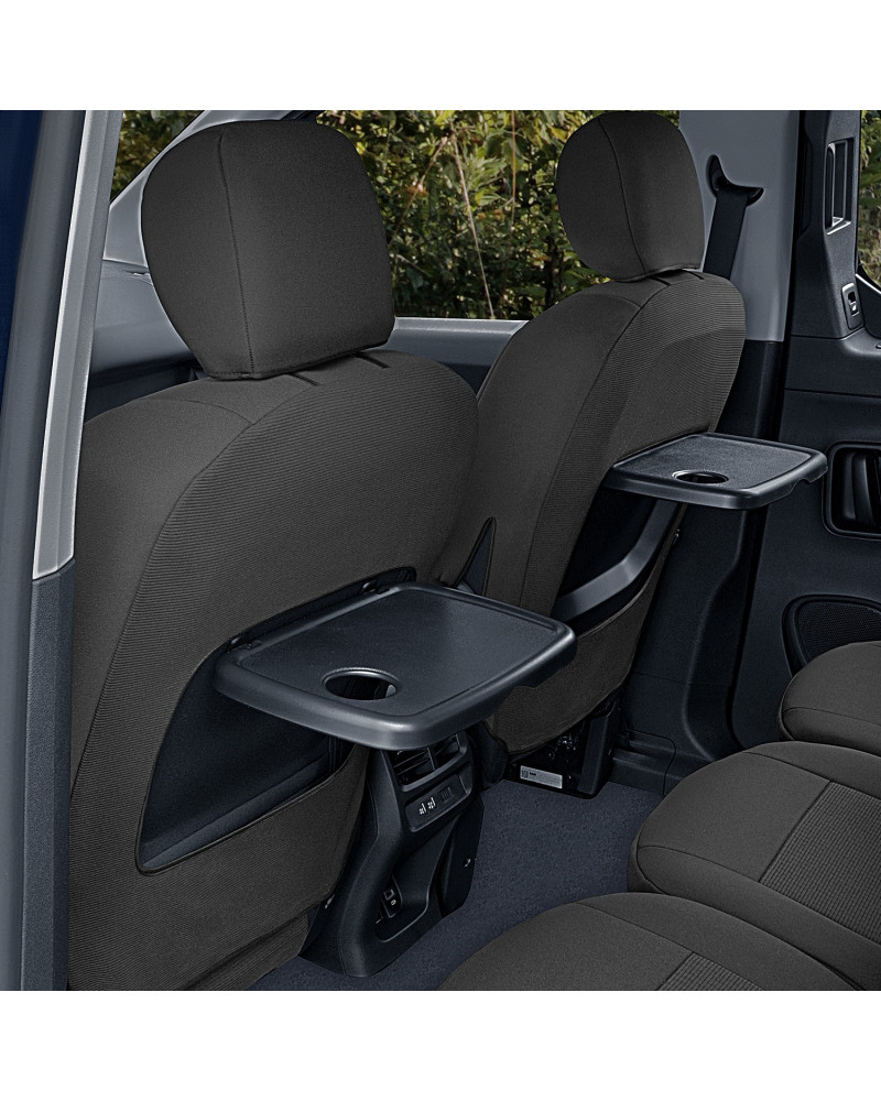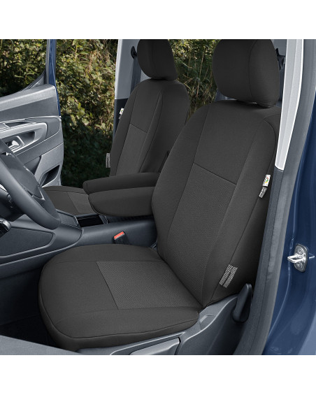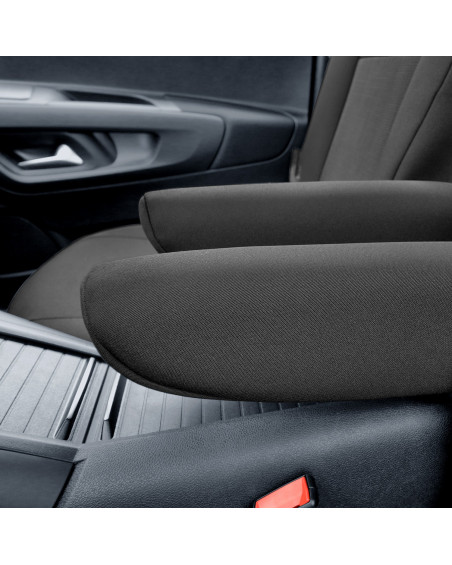 -2 poťahy na predné sedadlá (poťahy prispôsobené pre lakťové opierky inštalované v bočných častiach operadla a pre stolčeky v zadnej časti operadla)