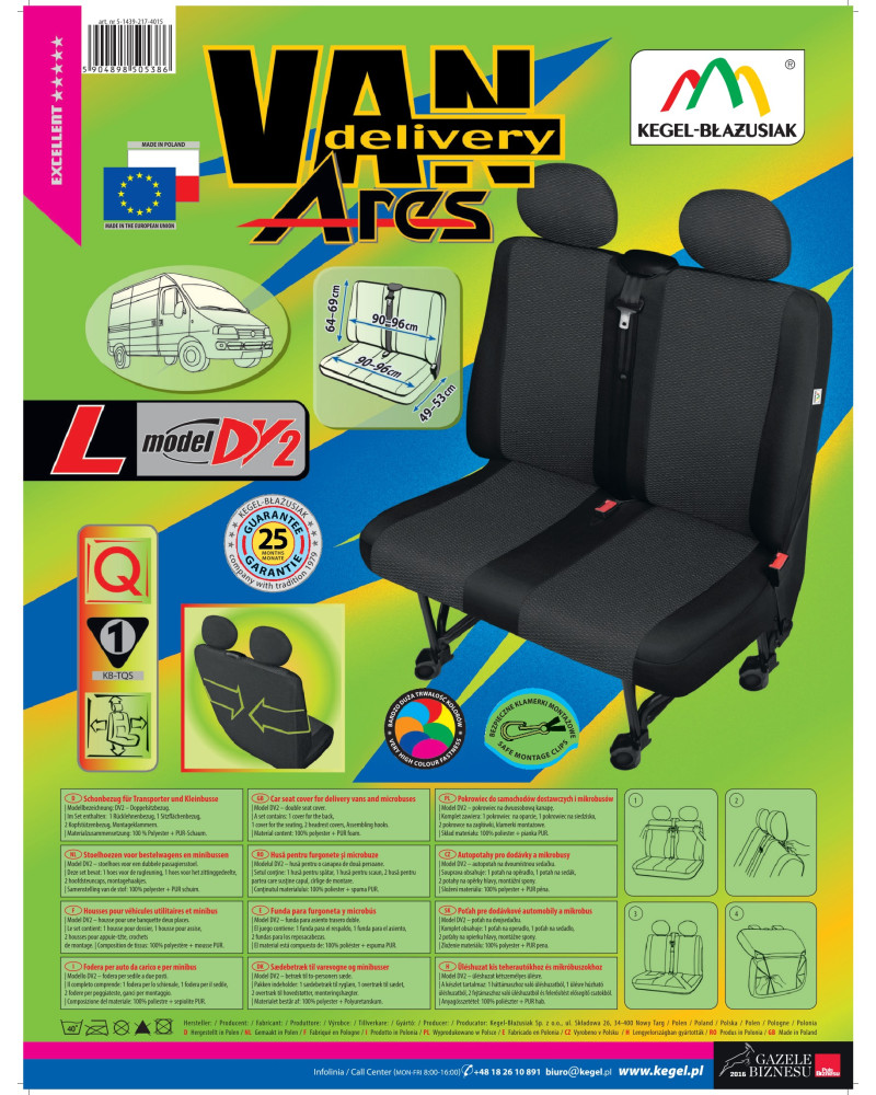 Poťahy na mieru ARES - pohodlné a bezpečné autopoťahy navrhnuté s ohľadom na majiteľov dodávok a mikrobusov - profesionálne vyrobené z neľahko horľavého, vysoko kvalitného žakárového materiálu. Presne z takýchto materiálov sa vyrábajú originálne obšitia sedačiek nových vozidiel pre automobilové továrne. Starostlivo ušité a dôkladne olemované. Vďaka správnej konštrukcii a rozmerom sa poťahy skvelo prispôsobia tvaru sedadiel konkrétnych modelov automobilov. Vďaka laminácii na vnútornej strane PUR penou sa neposúvajú voči sedadlu. Poťahy ARES efektívne chránia čalúnenie pred predratím, znečistením a zničením a tiež skvele vyzerajú vo vnútri vozidla. Poťahy sú celé vyrobené zo silného, odolného, pevného žakárového materiálu. Materiál má čiernu farbu - čierna s jemnou šedou textúrou skvele zapadne do interiéru každého automobilu. Poskytovaná záruka až 25 mesiacov vám dá istotu, že si kupujete výrobok najvyššej kvality.
