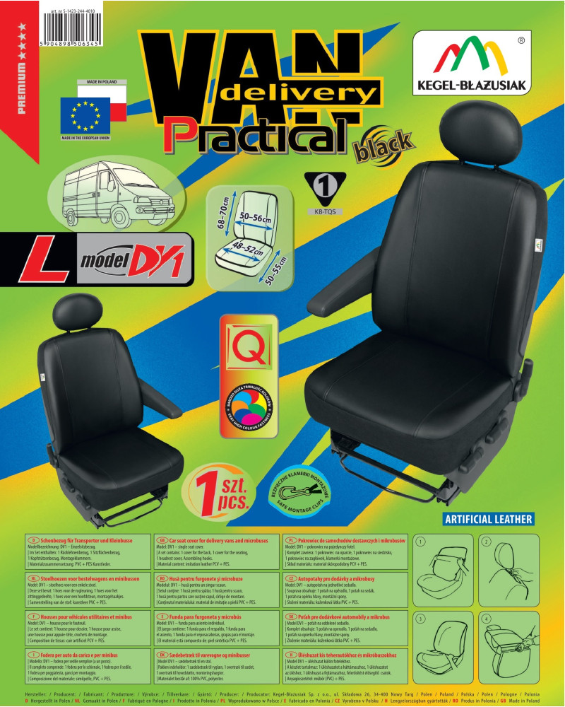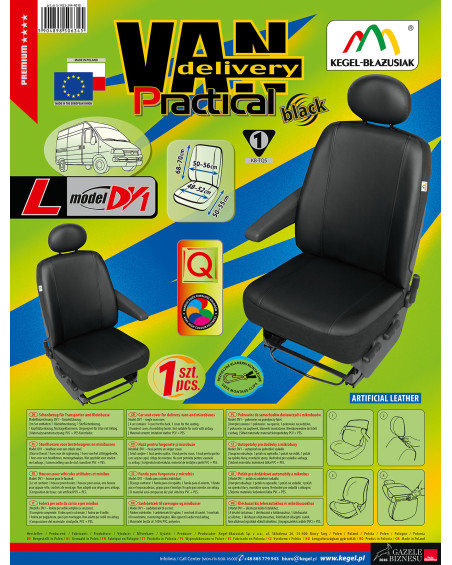 Prispôsobené poťahy PRACTICAL vznikli z nesmierne stálej ekokože novej generácie, čo v kombinácii so starostlivosťou zakončenia aj tých najmenších detailov uspokojí aj tých najnáročnejších zákazníkov. Správne nasadené poťahy nie sú prakticky na rozoznanie od originálneho koženého čalúnenia sedadiel a tohto efektu možno dosiahnuť za skutočne nízku cenu. Poťah je vyrobený zo silného a stáleho materiálu a vďaka správnej konštrukcii sa dobre prispôsobí sedadlám a priľne k nim, čím zabraňuje posúvaniu sa poťahu. Autopoťahy PRACTICAL veľmi dobre chránia originálne čalúnenie auta pred predratím a zničením a vkusný, moderný štýl vyvoláva pozitívne estetické vnemy. Produkt sa veľmi ľahko inštaluje a čistí. Poctivé prevedenie zaručuje vysokú kvalitu a dlhú dobu používania. Nepremokavý, nešpiniaci sa a nesmierne odolný materiál zaisťuje praktické používanie. Ponuka cieli na majiteľov dodávok a mikrobusov, ktorí sa chcú postarať o interiér svojich vozidiel, učiniť ich šik a dodať im eleganciu. Čierna, univerzálna farebnosť sa ideálne zladí s interiérom každého vozidla. Poťahy vyzerajú skvelo v každom aute. Sú výnimočne elegantné, preto tiež vďaka nim každý interiér pozdvihne svoju úroveň a získa gráciu.