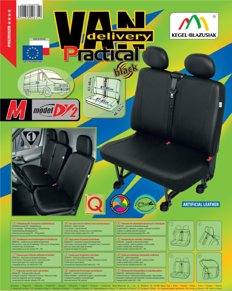 Prispôsobené poťahy PRACTICAL vznikli z nesmierne stálej ekokože novej generácie, čo v kombinácii so starostlivosťou zakončenia aj tých najmenších detailov uspokojí aj tých najnáročnejších zákazníkov. Správne nasadené poťahy nie sú prakticky na rozoznanie od originálneho koženého čalúnenia sedadiel a tohto efektu možno dosiahnuť za skutočne nízku cenu. Poťah je vyrobený zo silného a stáleho materiálu a vďaka správnej konštrukcii sa dobre prispôsobí sedadlám a priľne k nim, čím zabraňuje posúvaniu sa poťahu. Autopoťahy PRACTICAL veľmi dobre chránia originálne čalúnenie auta pred predratím a zničením a vkusný, moderný štýl vyvoláva pozitívne estetické vnemy. Produkt sa veľmi ľahko inštaluje a čistí. Poctivé prevedenie zaručuje vysokú kvalitu a dlhú dobu používania. Nepremokavý, nešpiniaci sa a nesmierne odolný materiál zaisťuje praktické používanie. Ponuka cieli na majiteľov dodávok a mikrobusov, ktorí sa chcú postarať o interiér svojich vozidiel, učiniť ich šik a dodať im eleganciu. Čierna, univerzálna farebnosť sa ideálne zladí s interiérom každého vozidla. Poťahy vyzerajú skvelo v každom aute. Sú výnimočne elegantné, preto tiež vďaka nim každý interiér pozdvihne svoju úroveň a získa gráciu.