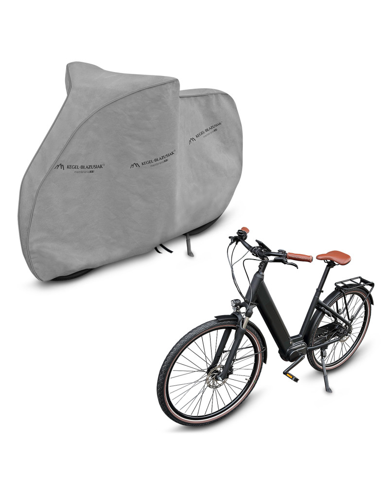 Membránový, vodotesný a zároveň paropriepustný kryt na ochranu vášho elektrického bicykla pred nepriaznivými vplyvmi počasia. Kryt je odolný voči vplyvom počasia a je vyrobený z vysoko paropriepustnej membrány. Je nepriepustný aj pri silnom daždi a zároveň paropriepustný, skvele odvádza vlhkosť spod krytu. Znižuje koróziu a starnutie plastových dielov, chráni pred vyblednutím a zmatnením laku a chrómových dielov. Vhodný na krátkodobé vonkajšie uskladnenie bicykla. Pripevňuje sa pomocou elastického sťahovacieho pásu, čo uľahčuje jeho nasadzovanie a sťahovanie. Dodatočné upínacie mechanizmy, slúžiace na pripnutie ku kolesám a úchytky pod bicyklom zabraňujú strhnutiu krytu vetrom. Je vhodný aj na použitie v interiéri a na ochranu bicykla bez elektrického pohonu.