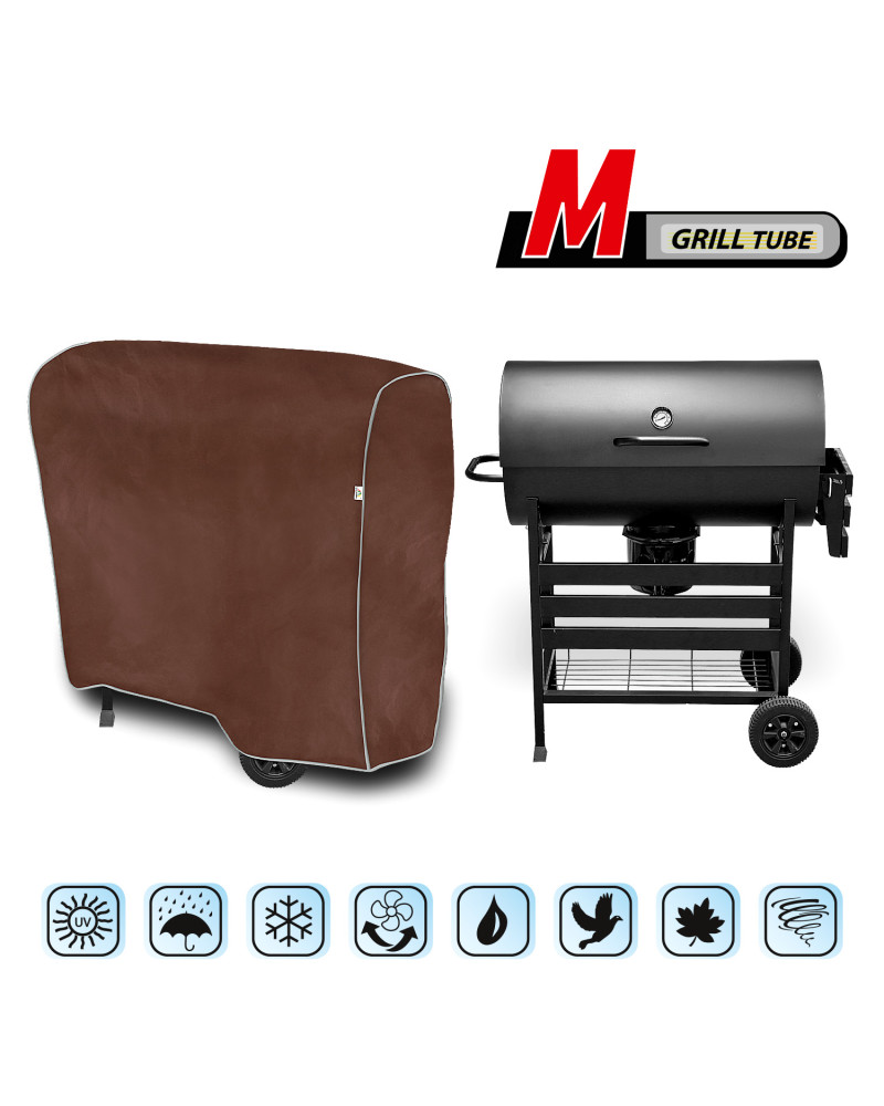 Nepremokavá plachta na ochranu grilu na uhlie alebo plyn uložených vonku pred nepriaznivým vplyvom prostredia. Vhodná tiež na použitie vo vnútri miestností. Chráni záhradný gril pred dažďom, snehom, námrazou a slnečnými lúčmi (škodlivé UV) a nečistotami, ako sú prach, vtáčie exkrementy a šťavy zo stromov. Nepremokavá plachta plne odolná voči atmosférickým podmienkam, na používanie po celý rok.