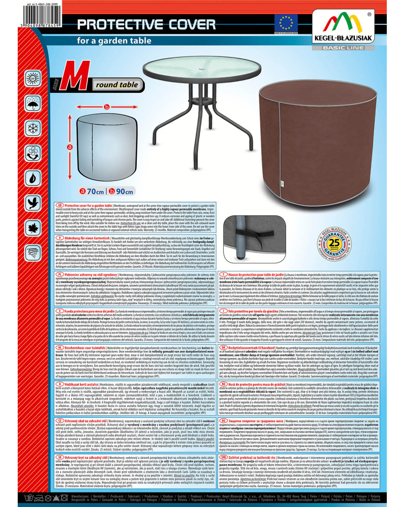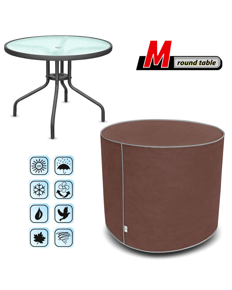 Celoročný kryt na ochranu záhradného stola umiestneného vonku pred nepriaznivými vplyvmi prostredia. Vďaka špeciálnej konštrukcii voda pri daždi steká z krytu bez toho, aby prenikla pod kryt. Tento kryt chráni stôl pred dažďom, snehom, mrazom a slnečným žiarením (škodlivým UV žiarením), ako aj pred nečistotami, ako je prach, vtáčí trus a miazga zo stromov. Znižuje koróziu a starnutie plastových alebo drevených častí, chráni pred vyblednutím a zmatnením laku a chrómových častí. Kryt je plne odolný voči všetkým vplyvom počasia. Ľahko sa nasadzuje a sťahuje. Dodatočné upevnenia zabraňujú strhnutiu poťahu vetrom. Vhodný aj na použitie v interiéri.