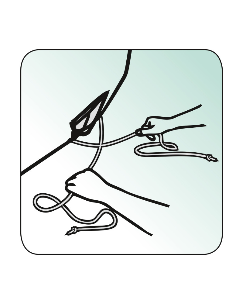 Obal s sivými lemami na vonkajšej strane nasuňte zhora na rám a sedadlo, pričom obal otočte tak, aby vrecko v spodnej časti obalu bolo vpredu sedadla. Prikrývku pripevnite k rámu pomocou suchých zipsov všitých do spodnej vnútornej strany krytu. Skrížte šnúry sťahovača a pevne ich utiahnite, pričom silu smerujte rovnobežne s prednou časťou sedadla (pozri obrázok č. 1). Zaviažte šnúry sťahovača a skontrolujte, či sa uzol neuvoľňuje po potiahnutí za sťahovač. Ak sa uzol uvoľní, opakujte postup a zmeňte spôsob viazania. Uzol spolu so šnúrami zasuňte do vrecka krytu.