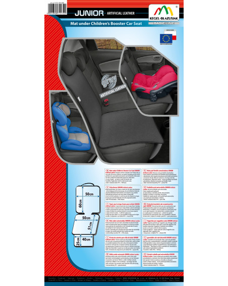 Profesionálna ochranná podložka pod detskú autosedačku JUNIOR z radu BASIC LINE – chráni autosedadlo pod autosedačkou pred predratím, znečistením a všetkými poškodeniami spôsobenými detskou autosedačkou a v nej sediacim dieťaťom. Je zhotovená zo žakárovej látky – silnej, pevnej, obohatenej o penovou vrstvu. Skvele chráni sedadlo, tlmí otrasy spôsobené jazdou a zmierňuje následky pohybu sedačky počas intenzívnejšieho brzdenia.