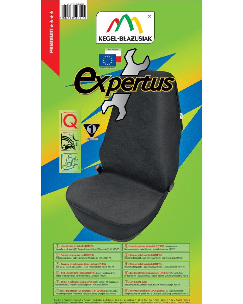 Ochranný/servisný poťah EXPERTUS – olejuvzdorný a neľahko premokavý – vyrobený preto, aby chránil čalúnenie sedadla pred nečistotami všetkého druhu a aby zabránil jeho zničeniu. Vyrobený zo stálej, silnej látky SPUNBOND vysokej kvality, zaisťuje tak veľmi ľahkú ochranu sedadla. Vďaka tmavej farebnosti sedadla sa veľmi prakticky používa. Materiál podlaminovaný PUR penou zabraňuje posúvaniu sa poťahu voči sedadlu. Poťah je prispôsobený pre bočné airbagy. Je vyrobený v univerzálnej veľkosti, vďaka tomu sa hodí na všetky štandardné autosedadlá. Veľmi ľahko sa inštaluje a čistí. Vysoká kvalita za super cenu!