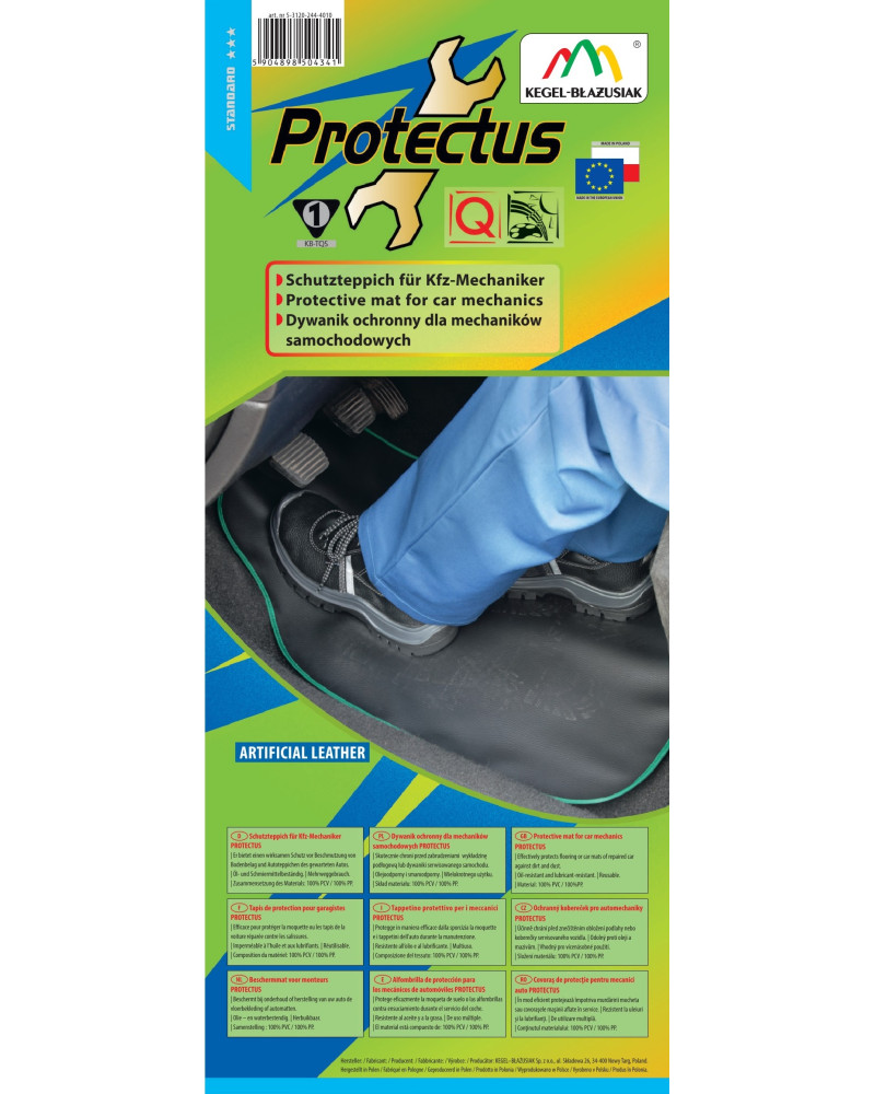Ochranný koberec PROTECTUS– vyrobený z ekokože novej generácie – nepremokavý, olejuvzdorný, odolný voči pachom. Vyrobený s ohľadom na automechanikov, zamestnancov servisov, osoby jazdiace v špinavých pracovných topánkach a tiež na tých, ktorí chcú esteticky ochrániť obloženie auta počas každodennej prevádzky. Koberec PROTECTUS náležite chráni obloženie podlahy alebo koberec opravovaného auta pred znečistením a poškodením. Na vnútornej strane je podšitý mäkkou látkou, ktorá jemne priľne k čalúneniu. Ekologický výrobok na opätovné použitie. Je profesionálne vyrobený zo silného, stáleho materiálu, ktorý sa vyznačuje dlhou životnosťou. Vyhotovený v univerzálnej veľkosti - na použitie v každom modeli auta. Výrobok sa ľahko čistí. Vysoká kvalita, nízka cena!