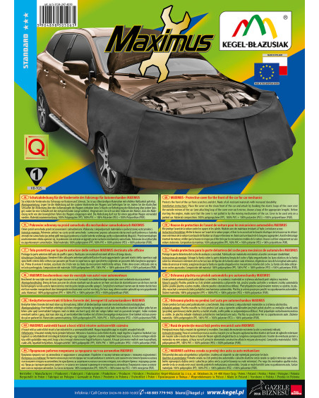 Ochranný poťah MAXIMUS II bol navrhnutý s ohľadom na automechanikov a zamestnancov servisov preto, aby ochránil pred poškrabaním a znečistením prednú časť opravovaného auta spolu s jeho bokmi a aby mechanikom zaistil pracovný komfort. Ochráni celú prednú časť okolo komory motoru a boky opravovaného auta, vďaka tomu môžu zamestnanci závodu pokojne opravovať auto bez obáv, že poškodia karosériu. Poťah je vyrobený z neľahko premokavej a olejuvzdornej látky SPUNBOND - materiálu, ktorý zaistí spoľahlivú ochranu auta. Jemná látka na vnútornej strane poťahu nepoškrabe karosériu. Ekologický výrobok na opätovné použitie. Vyhotovený v univerzálnej veľkosti - na použitie na každom modeli auta. Ľahko sa inštaluje - pevne sa pripevní s pomocou protišmykového materiálu, vďaka nemu sa takmer sám „prilepí“ k opravovanému autu. Je vybavený doplňujúcimi gumičkami na zaháčkovanie za zrkadlá na zvýšenie bezpečnosti. Neobsahuje žiadne kovové diely. Poťah sa veľmi ľahko čistí. Pohodlne sa skladuje/preváža, pretože po zložení nezaberie príliš miesto. Pri kúpe nášho poťahu máte istotu, že získate produkt najvyššej kvality.