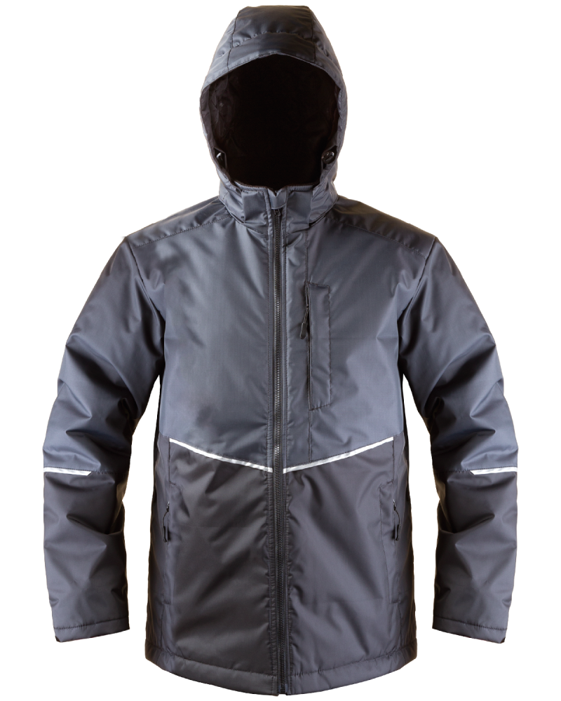 Zimná bunda s kapucňou V-Work s moderným a praktickým strihom. Vodeodolná pracovná bunda, ktorá chráni pred chladom, vetrom a vodou, ideálna do práce alebo na nosenie na jeseň a v zime. Praktická, funkčná bunda (multifunkčné vrecká), zabezpečujúca pohodlie v nepriaznivých poveternostných podmienkach (zateplená, nastaviteľná, predĺžená zadná časť) a zaručujúca pocit mimoriadnej bezpečnosti a lepšej viditeľnosti (reflexné prvky).