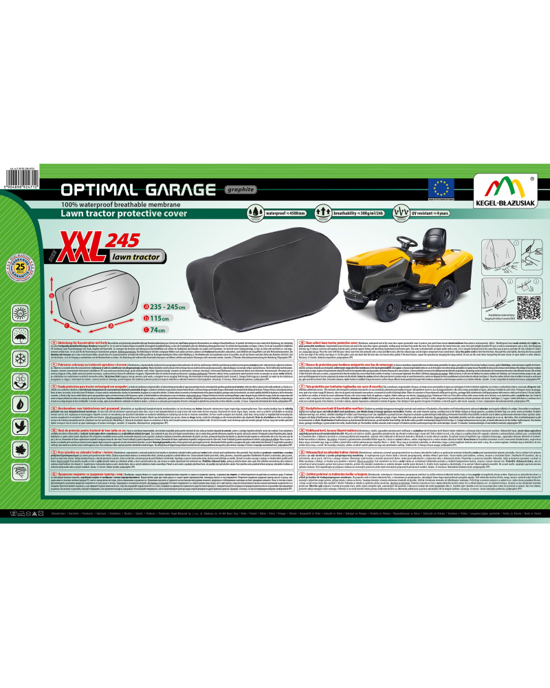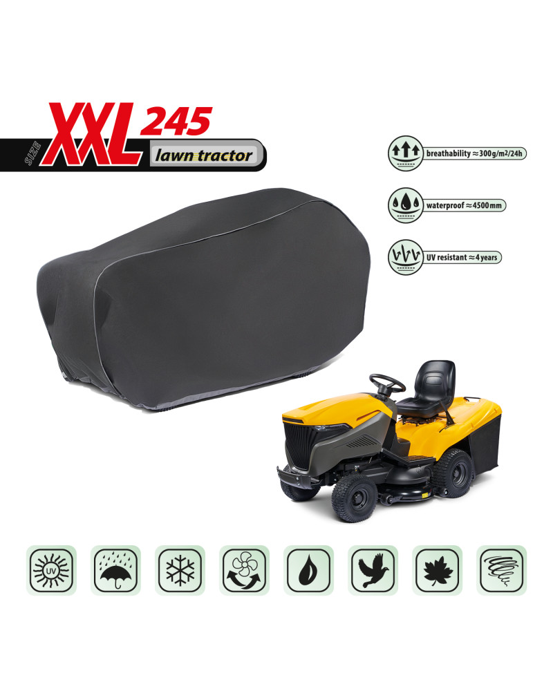 Celoročný kryt na ochranu záhradného traktora so spaľovacím motorom, uloženého vonku pred nepriaznivými vplyvmi prostredia. Vďaka špeciálnej konštrukcii steká voda pri daždi z krytu bez toho, aby sa dostala pod kryt a vodné pary sú odvádzané smerom von. Chráni traktor pred dažďom, snehom, mrazom a slnečným žiarením (škodlivým UV žiarením), ako aj pred nečistotami, ako sú prach, vtáčí trus a miazga stromov. Znižuje riziko korózie a starnutie plastových dielov, chráni pred vyblednutím a zmatnením laku a chrómových dielov. Kryt je plne odolný voči všetkým poveternostným podmienkam.